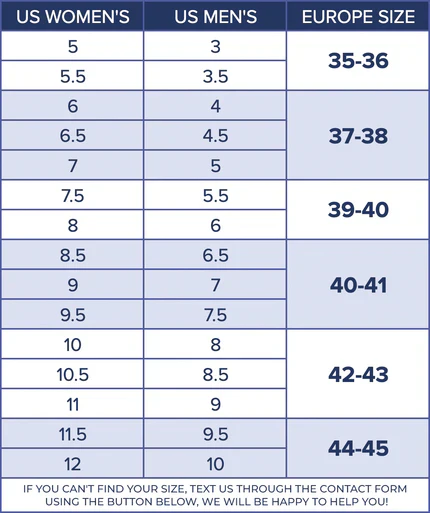 | Foot Length | Women (US) | Men (US) | Europe Size |